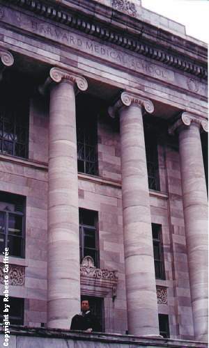 Frente à Harvard Medical School, complexo ligado à Universidade de Harvard, na qual o Massachusetts General Hospital faz parte.