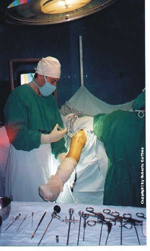 Aspecto de uma videoartroscopia de joelho.