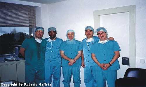 Equipe da Fundação MAPFRE de Medicina, em Madrid, no estágio de especialização, com o Dr. Pedro Guillén Garcia (C).